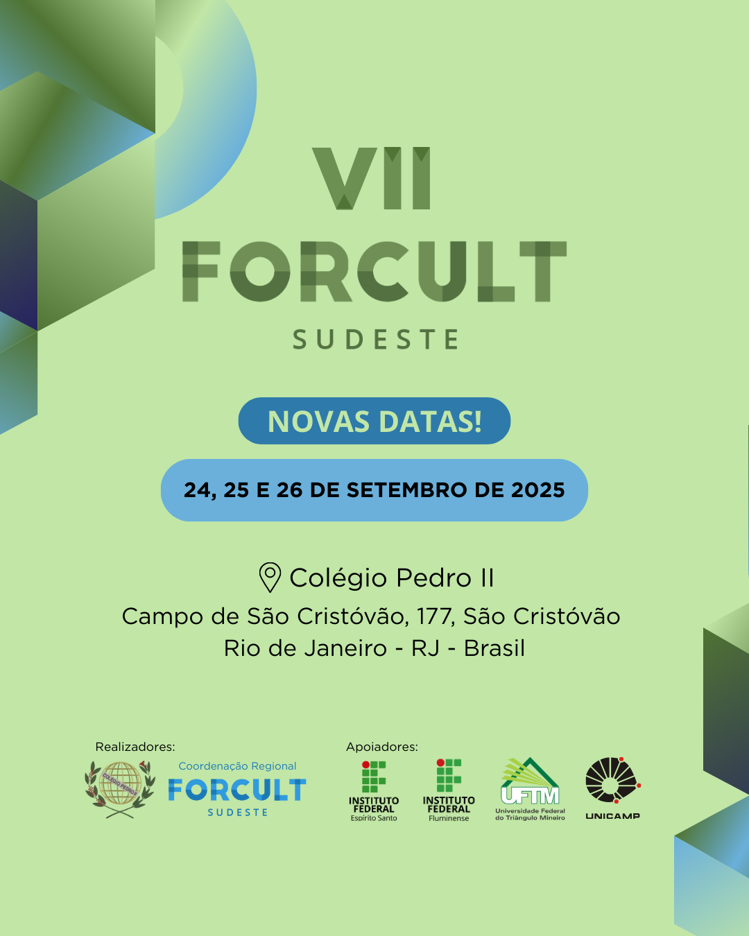 Em 2025, o VII FORCULT Sudeste - Fórum Nacional de Gestão Cultural das Instituições de Ensino Superior da Região Sudeste - vai realizar sua 7° edição nos dias 24, 25 e 26 de...
