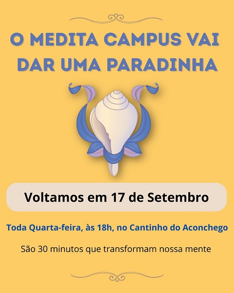 O projeto de Extensão “Medita Campus” da Pró-reitoria de Assistência Comunitária e Estudantil (PROACE) fará uma pausa no recesso escolar, a partir de 7 de agosto e retornará no...