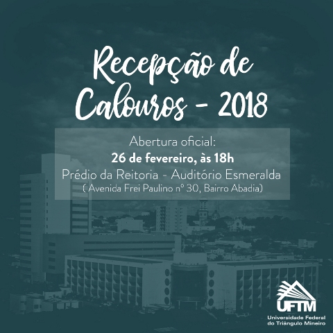 A UFTM realiza a abertura oficial da Calourada 2018 hoje, às 18h, no Auditório Esmeralda, no Prédio da Reitoria, localizado na Avenida Frei Paulino nº 30, Bairro Abadia. Na...