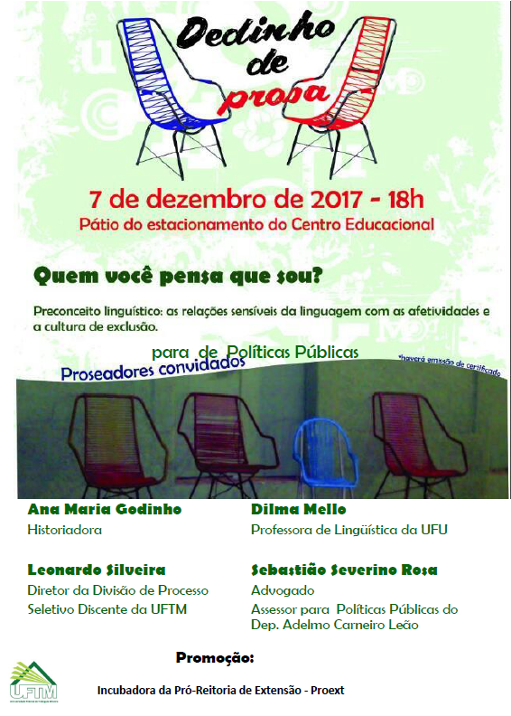 Com o tema “Quem você pensa que sou?” acontece mais uma edição de Dedinho de Prosa na próxima quinta-feira, dia 7, às 18h, no pátio do estacionamento do Centro Educacional,...