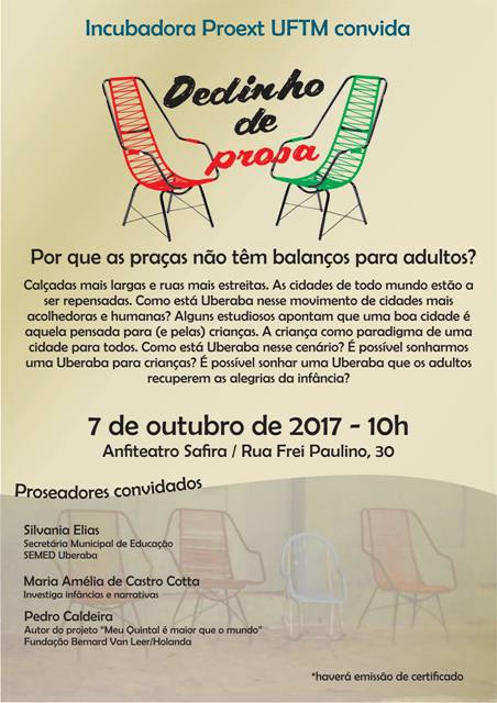 A primeira atividade da Incubadora da Proext, intitulada "Dedinho de Prosa", será realizada no próximo sábado, dia 7 de outubro, no auditório Safira, a partir das 10 horas. A ação...
