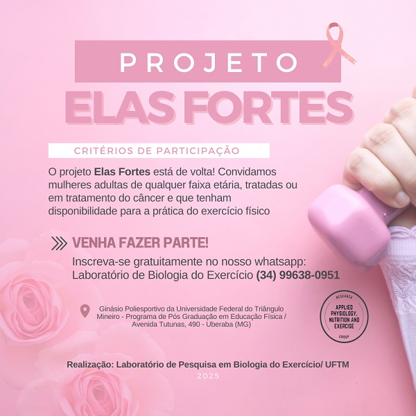 “Elas Fortes”, projeto de extensão do Programa de Pós-graduação em Educação Física (PPGEF) e do Departamento de Ciências do Esporte/ICS da UFTM, está com inscrições abertas...