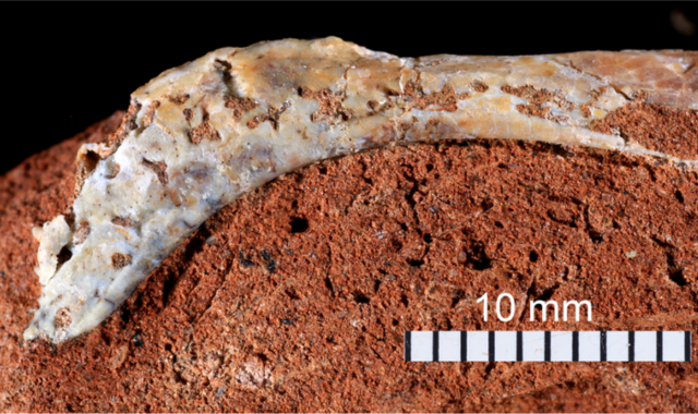 Mandíbula do novo peixe fóssil de Campina Verde, Britosteus amarildoi, em vista lateral esquerda (acima) e em vista ventral (abaixo). Foto: Agustín Martinelli. Pesquisadores do Centro...