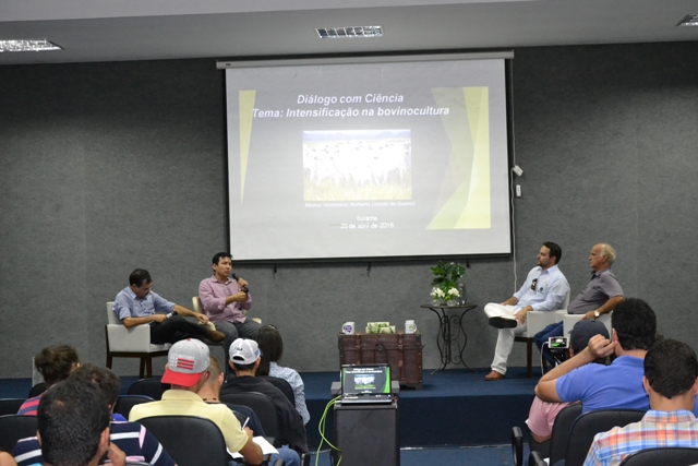 Os convidados apresentaram suas contribuições sobre o tema e, posteriormente, a plateia participou por meio de questionamentos e depoimentos pessoais sobre as práticas de intensificação na criação de gado bovino.