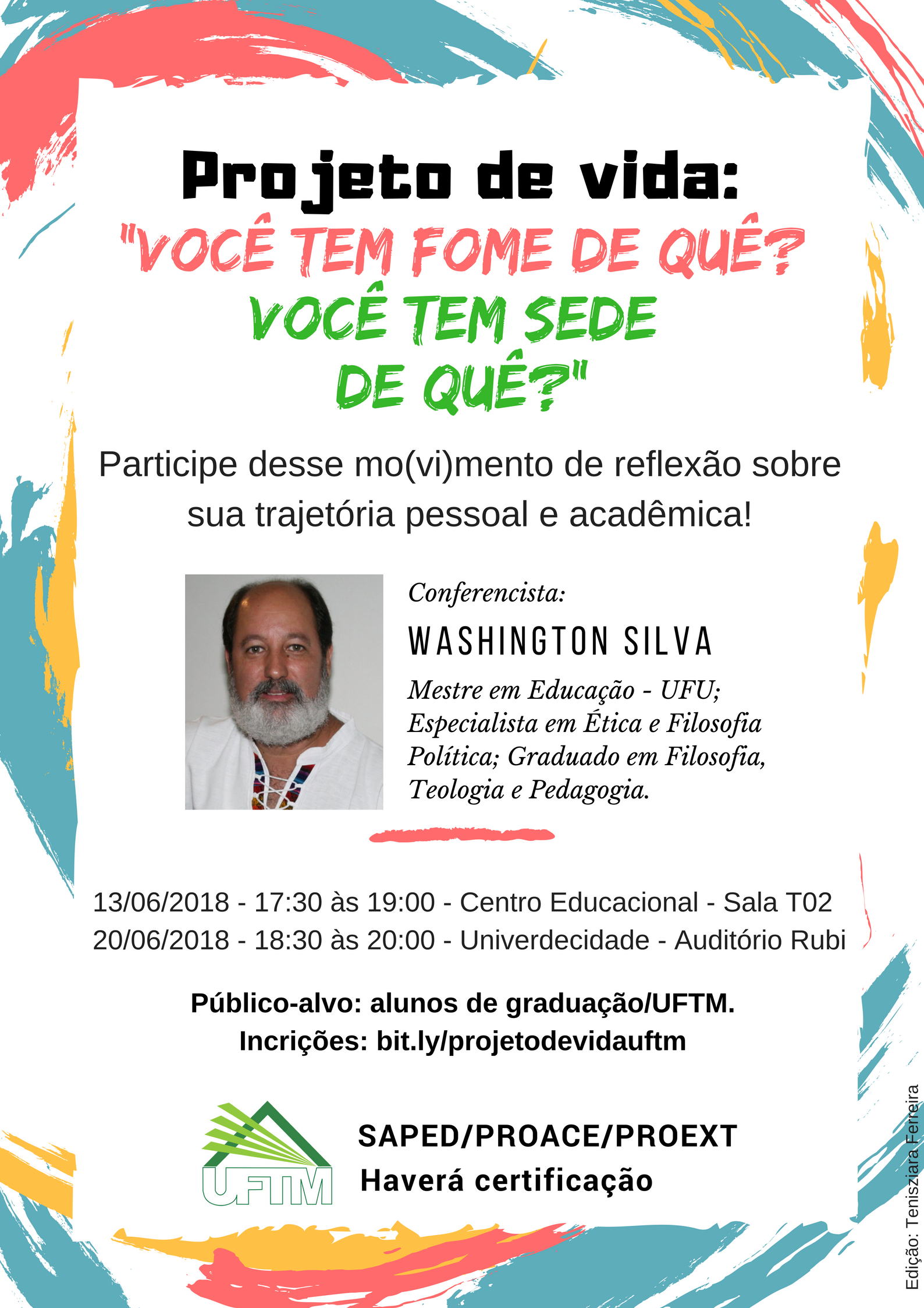 As vagas são limitadas e as inscrições podem ser realizadas acessando o formulário bit.ly/projetodevidauftm até o dia 8 de junho. Haverá certificação.