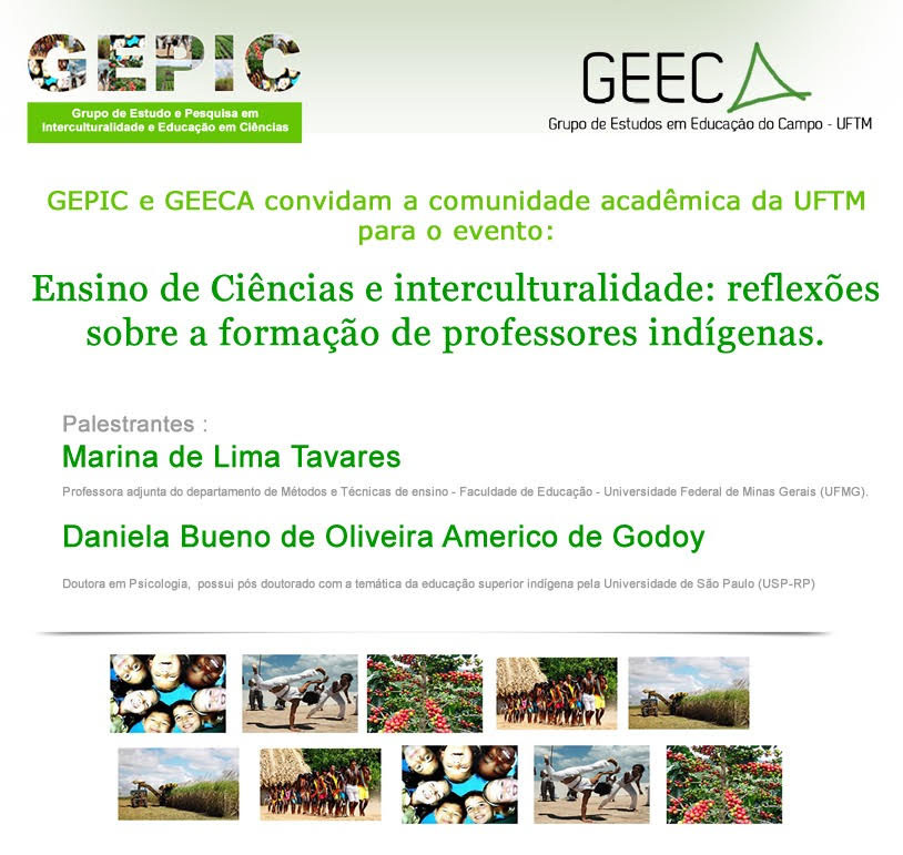A UFTM está com inscrições abertas e gratuitas para professores, alunos e servidores participarem do seminário "Ensino de ciências e interculturalidade na formação de professores indígenas" que será realizado no dia 13 de fevereiro de 2017, das 19 às 21 horas no Centro Educacional. O evento é organizado pelo Grupo de Estudo e Pesquisa em Interculturalidade e Educação em Ciências - Gepic, cadastrado no CNPq e na Pró-Reitoria de Pesquisa e Pós-graduação da UFTM, e pelo Grupo de Estudos em Educação do Campo da UFTM, o GEECA.