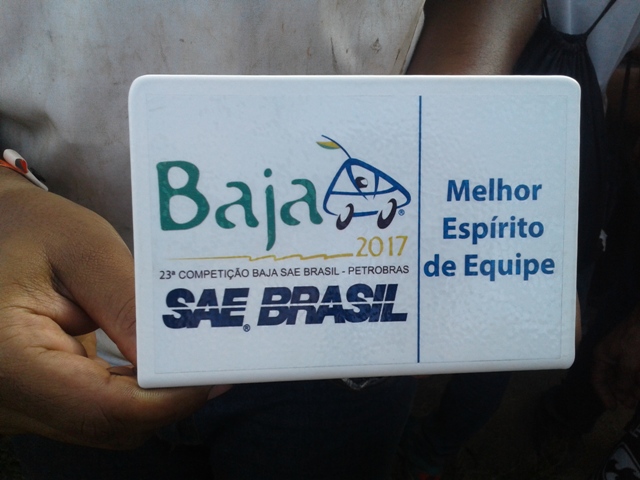 A Equipe Zebu Baja UFTM recebeu o prêmio de melhor espírito de equipe na 23ª Competição Nacional Baja SAE Brasil, realizada na cidade de São José dos Campos, no estado de São Paulo, entre os dias 8 e 12 de março. Ao todo, participaram 79 equipes de várias instituições de ensino do Brasil. Foi a quarta participação da equipe da UFTM. O resultado final geral ainda não está pronto, mas a premiação sobre o espírito de equipe já demonstra destaque para a união do grupo, 29 alunos dos cursos de Engenharia da UFTM, coordenados pelo professor Marcos Shimano. "Foi considerado Espírito de Equipe demonstrações de união, companheirismo, coleguismo, apoio e disciplina, respeitando regra e código de conduta. Mas eu acho que o que mais contou para a escolha da nossa equipe foi a determinação, pois tivemos vários problemas graves no carro, mas nunca pensamos em desistir. Além disso, as nossas soluções para os problemas foram inteligentes e muito boas, ou seja, foi engenharia", ressaltou Shimano. Outro destaque foi a terceira colocação do sistema de Eletrônica na apresentação de projetos.