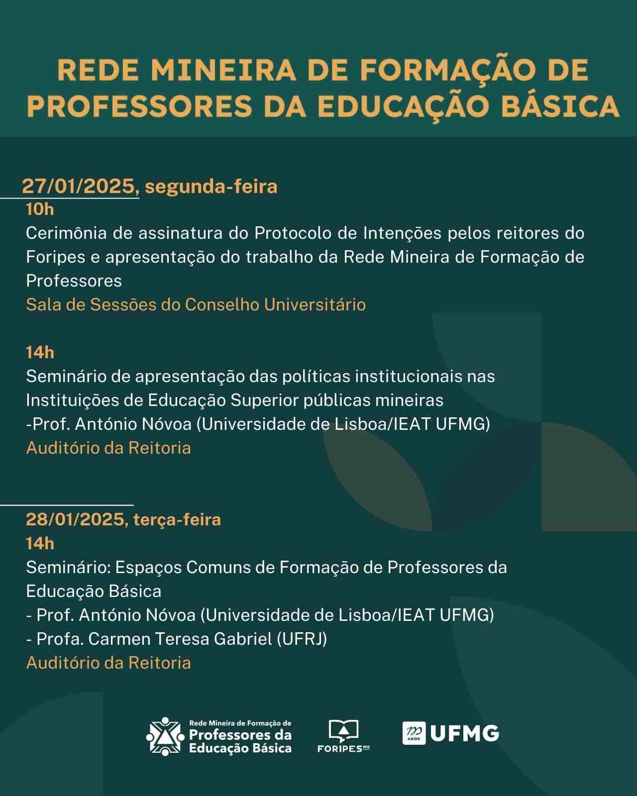 O seminário contará com a participação do professor António Nóvoa, da Universidade de Lisboa, e da professora Carmen Teresa Gabriel, da UFRJ, trazendo reflexões sobre os desafios e perspectivas da formação docente.