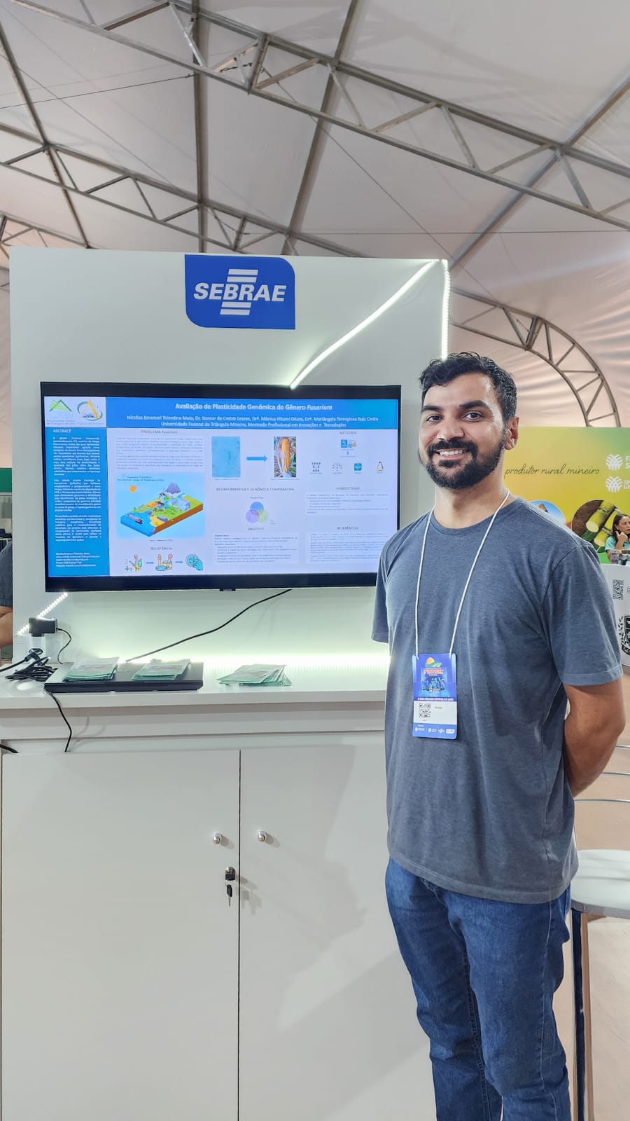 No dia 3 de abril de 2025, o Programa de Mestrado Profissional em Inovações e Tecnologias (PMPIT), em parceria com o SEBRAE, esteve presente na Feira do Agronegócio do Estado de Minas Gerais (FEMEC), realizada em Uberlândia. No stand do Sebrae, foi apresentado o trabalho "Avaliação da Plasticidade Genômica no Gênero Fusarium", destacando o potencial da pesquisa para o desenvolvimento de novas tecnologias aplicadas ao agronegócio.