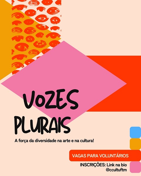 Para a realização dos projetos e eventos, o Programa Vozes Plurais está com vagas abertas para voluntariado, destinadas a discentes, docentes, técnicos-administrativos e membros da comunidade externa que desejem atuar ativamente na construção das atividades extensionistas.