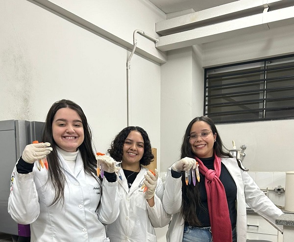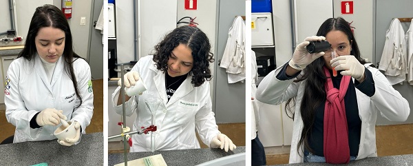 Participam também as discentes do curso de Licenciatura em Química, Bruna Garibalde da Silva (bolsista da PROENS), Nathália Lina de Oliveira Lina (discente de IC e colaboradora no Projeto de Ensino) e Emily Aparecida Santana Cunha (colaboradora nos projetos de Ensino e de IC). As vigências dos projetos de Ensino e de IC são até dezembro de 2025 e março de 2026, respectivamente.