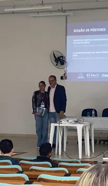A apresentação da mestranda Elaine G. da Silva do trabalho intitulado "A interdisciplinaridade no novo ensino médio: o que professores têm a dizer sobre isso?", sob orientação da professora Janaína F. de Ornellas, do Programa de Pós-graduação em Educação em Ciências e Matemática (PPGECM/UFTM), foi destaque no Simpósio Mineiro de Educação Química (SMEQ).
