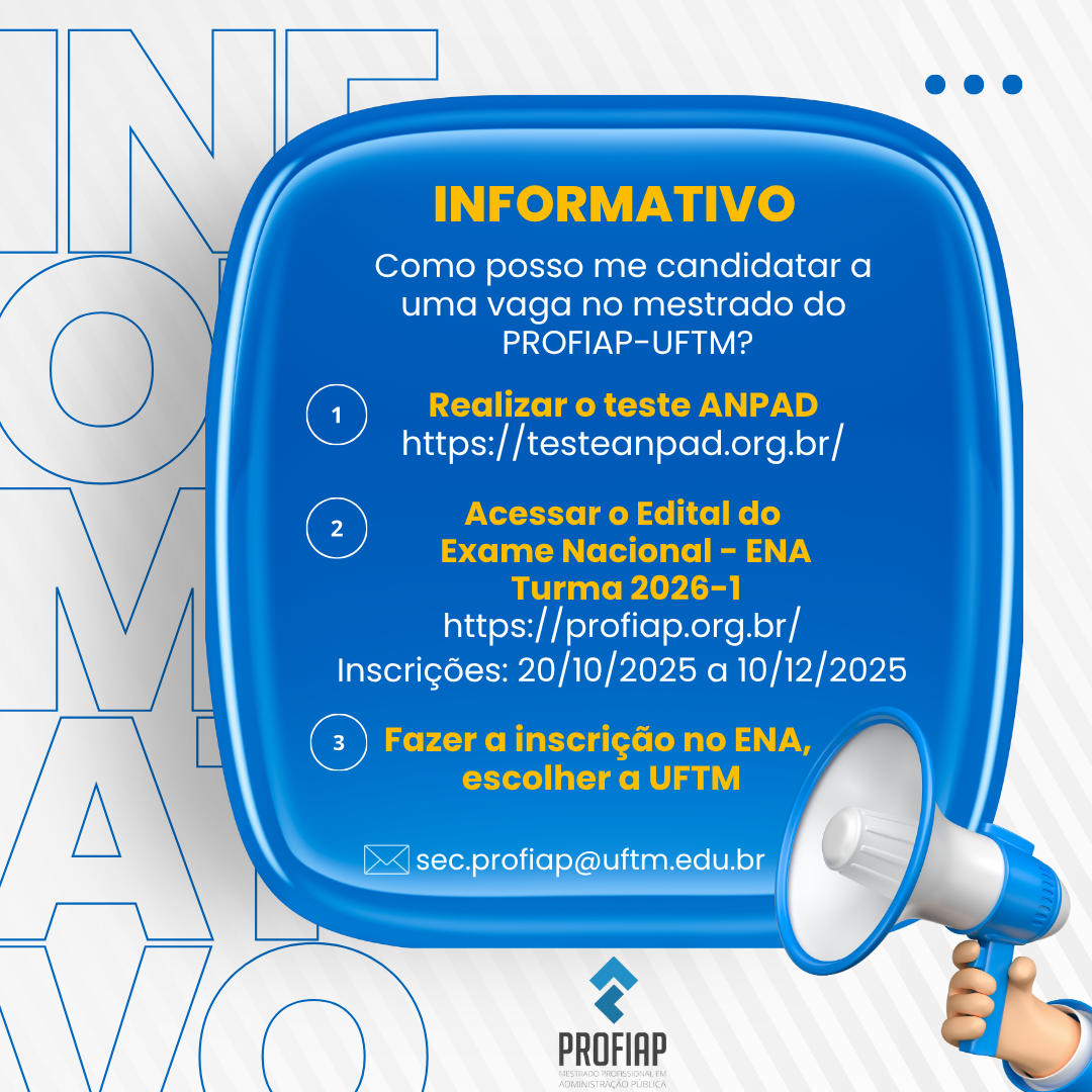 Interessados em ingressar no Mestrado Profissional em Administração Pública (PROFIAP) – ENA devem se inscrever até o dia 10 dezembro para participarem do processo seletivo. As aulas terão início no primeiro semestre de 2026.