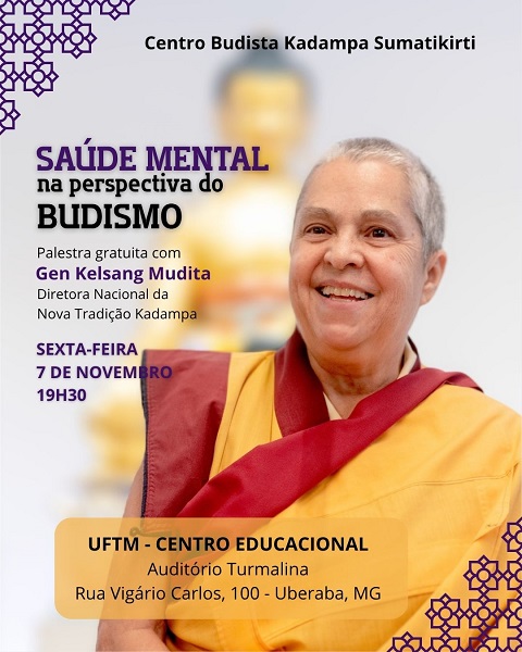A palestra sobre “Saúde Mental na Perspectiva do Budismo” será realizada para quem tiver interesse no tema nesta sexta-feira, 7 de novembro, às 19h30 no auditório Turmalina, no Centro Educacional da UFTM. O evento é promovido pelo Projeto Medita Campus da UFTM e Centro Budista Kadampa de Uberaba