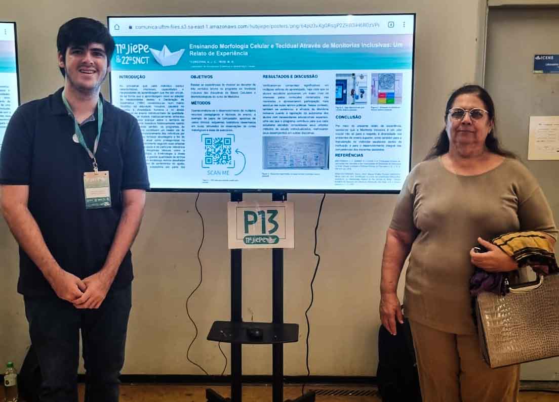 De autoria do aluno Bruno Oliveira e da professora Maria das Graças Reis, o artigo “Monitoria Inclusiva no Curso de Medicina: Um Relato de Experiência”  foi publicado na Revista da Educação Inclusiva. A publicação valoriza e evidencia a importância do tema como estratégia pedagógica fundamental para o fortalecimento da permanência e do sucesso acadêmico dos estudantes com NEE.