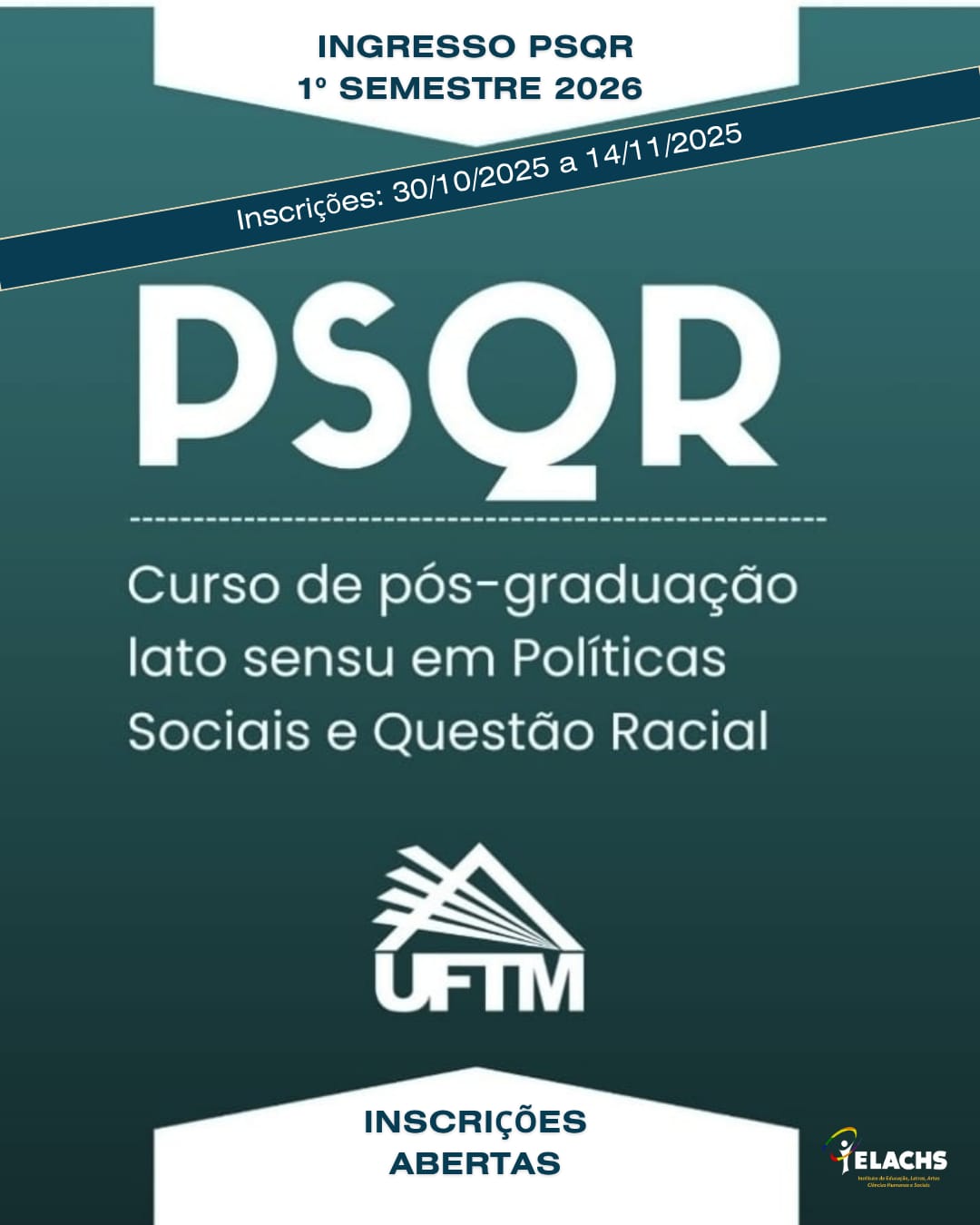 O Curso de Especialização em Política Sociais e Questão Racial (PSQR) alerta para o encerramento do período de inscrições no processo seletivo de candidatos para ingresso no 1° Semestre de 2026 (Edital 50/2025) em 14/11/2025.