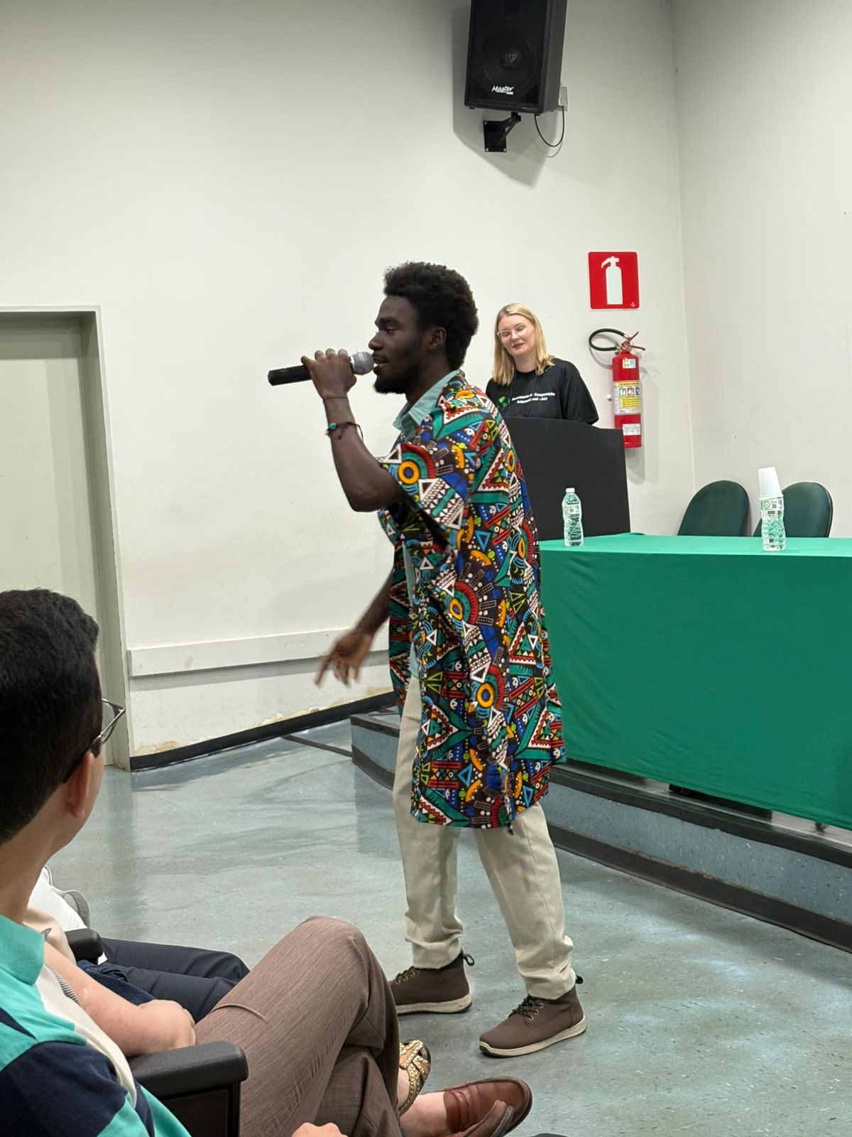 O intervalo cultural foi um dos pontos altos do dia. O aluno Clemmy Sounga (República do Congo) emocionou o público ao cantar uma música autoral e declamar um poema. Na sequência, as estudantes moçambicanas Natacha, Heloisa e Ângela contagiaram o auditório com a dança tradicional de seu país, trazendo cor, ritmo e alegria ao evento.