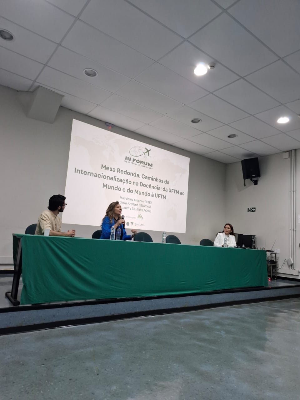 Em seguida, os professores Jesús Arellano (Brasil) e Madeleine Albertini (Brasil) emocionaram o público com suas histórias pessoais e profissionais até chegarem à docência na UFTM. Foram compartilhados os desafios, as superações e a importância da internacionalização em suas trajetórias.