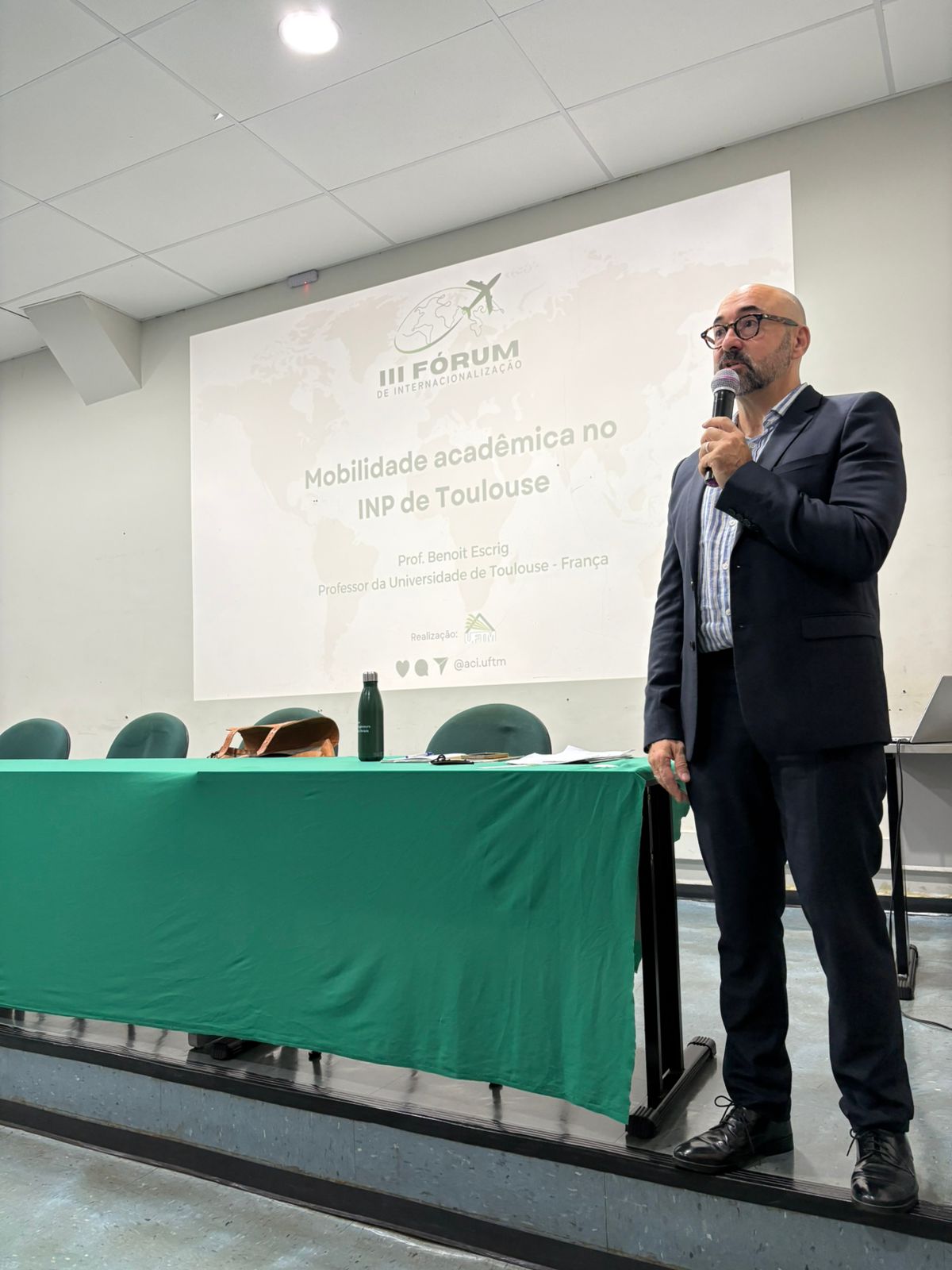 No segundo dia o Professor Benoît Escrig (França) apresentou as possibilidades de mobilidade acadêmica em seu país. O professor destacou que pretende levar para a França o modelo de evento vivenciado na UFTM.